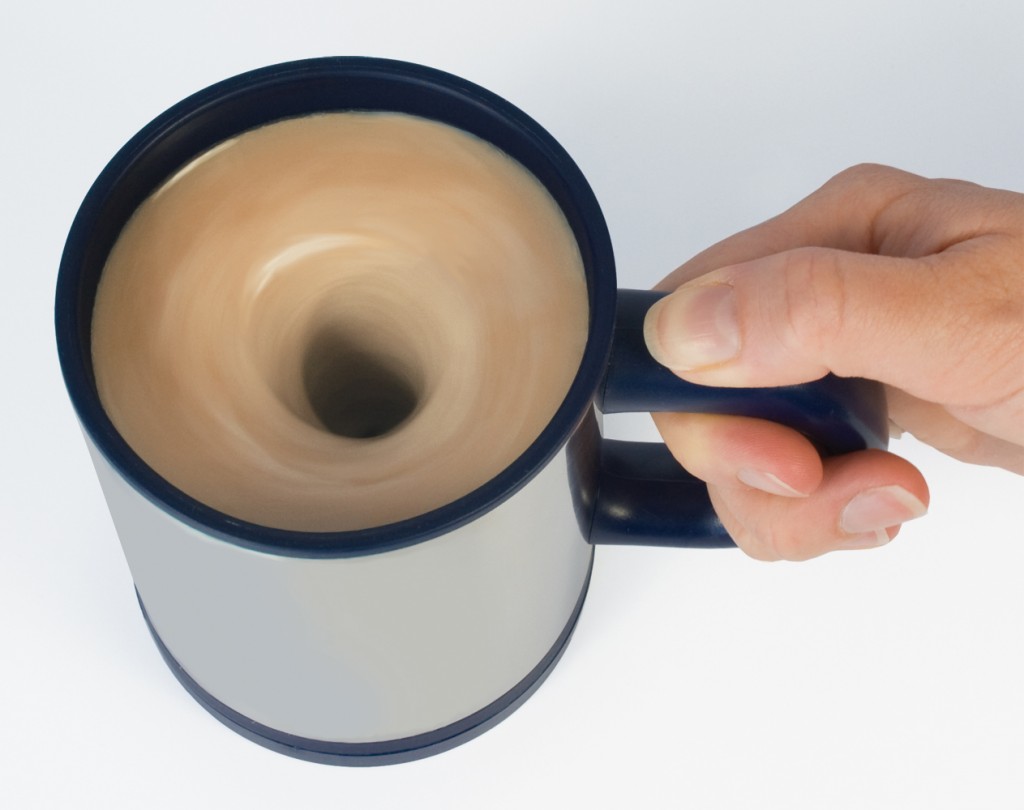 Jeder Tag beginnt mit einer Tasse frischen Kaffee oder mit einem dampfenden Tee. Die etwas andere Tasse ist bei uns im erfinderladen und im Online Shop für € 18,90 zu haben. Mit dem selbstumrührenden Becher lässt sich der Zucker mühelos per Knopfdruck einrühren.